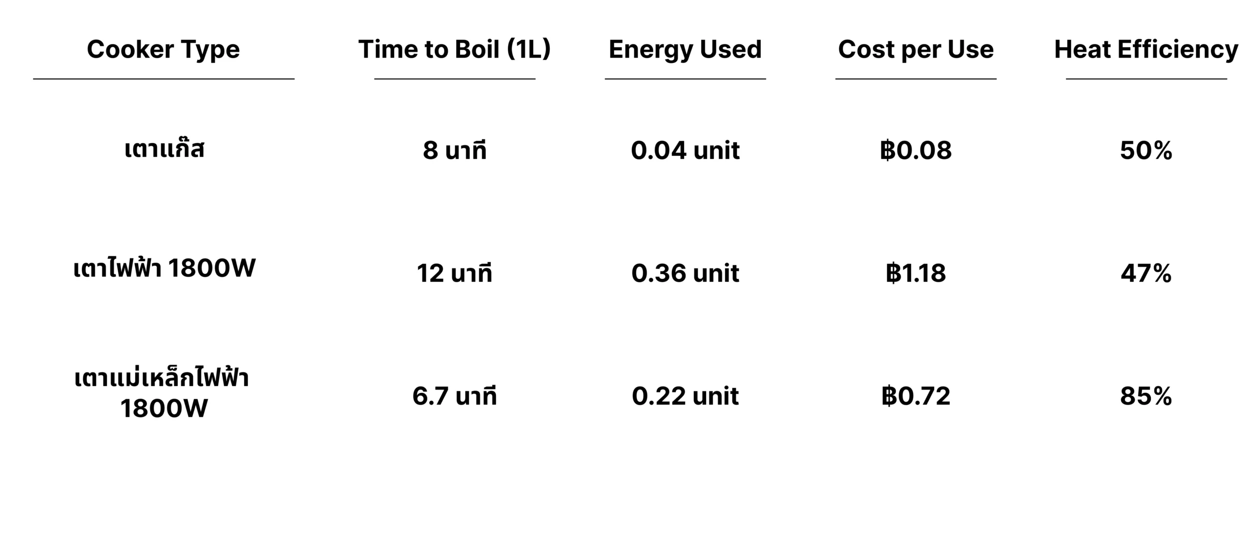 และช่วยประหยัดพลังงานได้มากกว่า 30% เมื่อเทียบกับเตาไฟฟ้าและเตาแก๊สทั่วไป